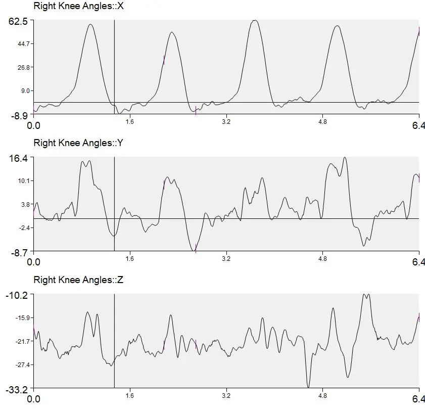 We took the knee joint as an example. When the treadmill speed was 5km/h, 7km/h, 9km/h, and 11km/h, the subjects did not experience excessive flexion, overstretch, and excessive internal or external rotation of the knee joint during running. Therefore, the above four speeds are safe for knee joint activities.