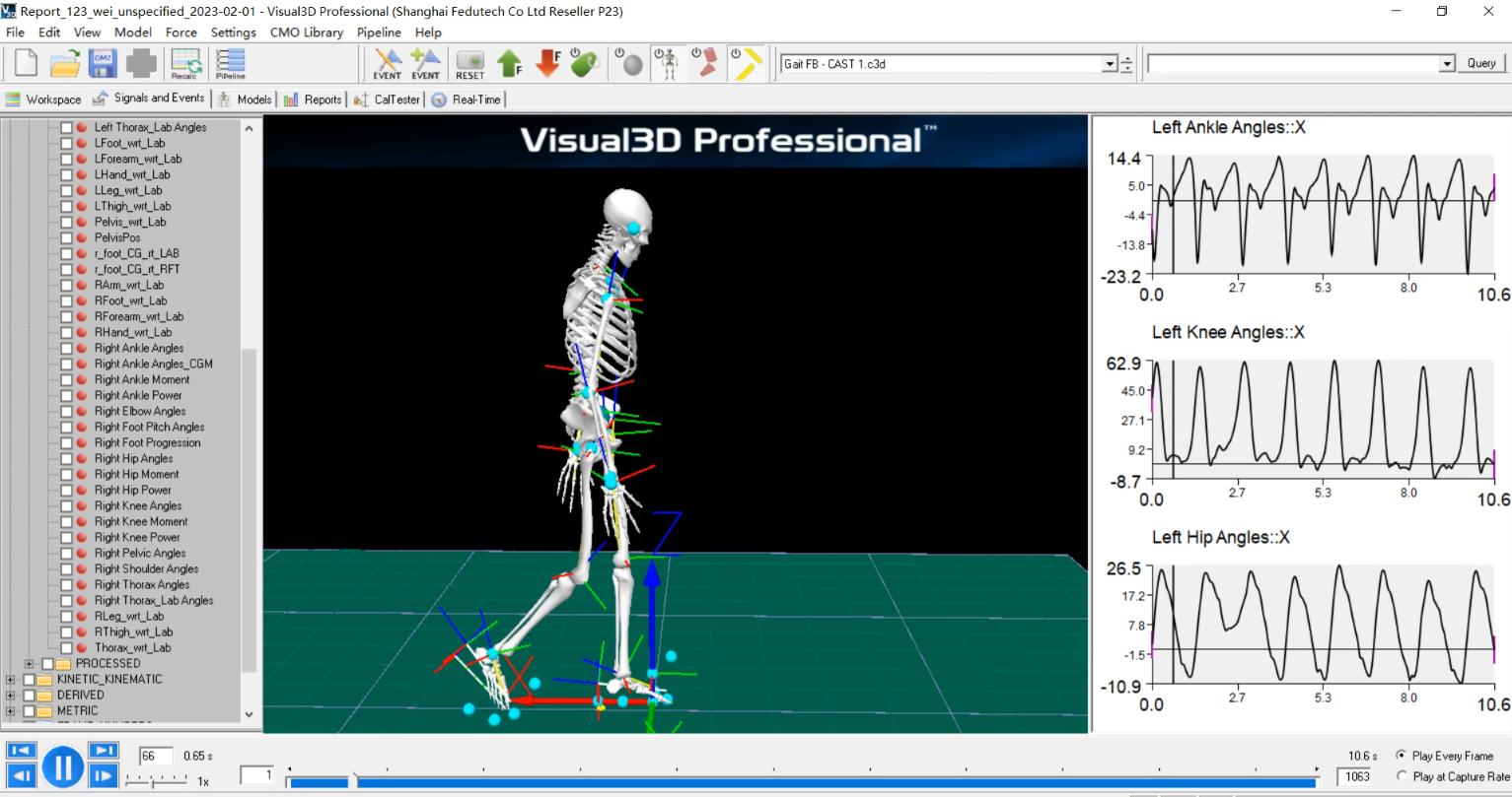 生物力学计算:三维运动学、三维动力学和EMG肌电图;