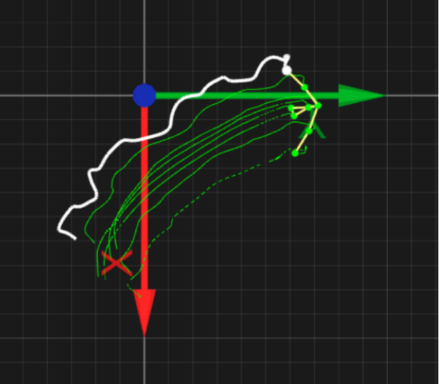 下图是实验对象在XOY平面与XOZ平面的飞行轨迹图,实验对象的运动主要考察其飞行中各部位的变化规律。可以看出,翼尖、腕骨随翅膀运动在X方向、Y方向、Z方向均有较明显的位移变化,并呈周期性变化,头骨、前缘根部与尾缘根部的运动变化很小。