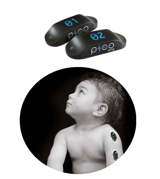 PicOEMG 体积小,电池续航时间长,无导线,粘贴简单,可以应用于长时间的步态测试,甚至可以进行全天的步态测试以及儿童的肌电测试。