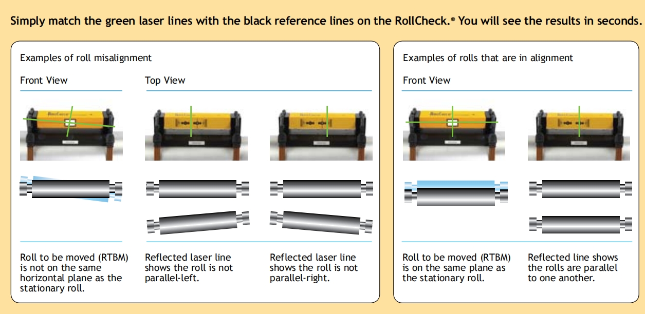 Reduces down time and product waste due to misalignment of rolls