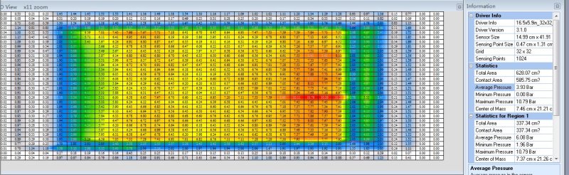 传感器由电阻式薄膜传感单元数组组成,每个传感单元材料为导电橡胶,当传感单元受到压力作用时,就接通了电子回路,设备通过计算电阻阻值的变化而得出每个传感单元的压力值。软件可同时显示每个传感单元的压力,并以二维和三维的图形方式直观显示压力变化。此系统采用复杂的数学算法,智能的将信号与噪声分开,其先进的电子屏蔽技术能够在****上避免传感器受噪声、温度和湿度的干扰。