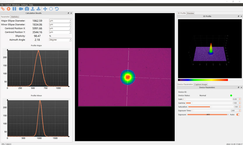 光束分析仪也称为光束轮廓仪,是一种用来测量雷射光束在一个截面上的光强分布,不仅能测量光束的外形,还可以测量得到光强的细节分布。