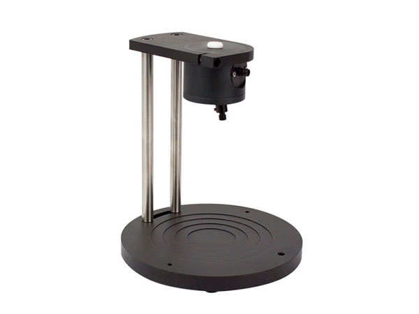 反射式积分球的样品口和入射光进口成一定角度关系,如果将积分球直接置于平台上,将造成测量的诸多不方便以及不能包装测量的稳定性,该积分球支架可以将积分球倒置固定,确保样品置于样品的口的正上方,同时非常方便光纤的连接和固定,极大地提高了测量的便捷性和稳定。