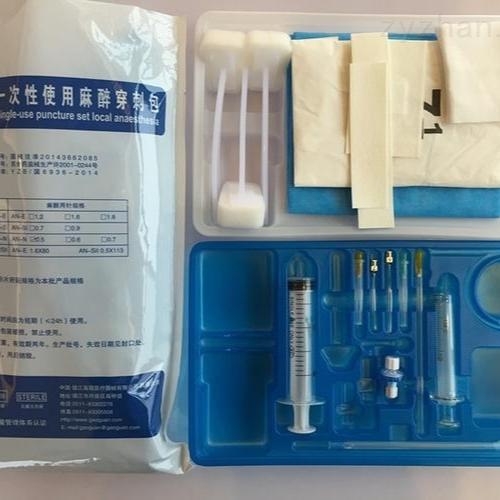 一次性使用麻醉穿刺包用于对人体做硬脊膜外腔神经阻滞、蛛网膜下腔阻滞、神经阻滞等各种麻醉方法时进行穿刺、注射药物。