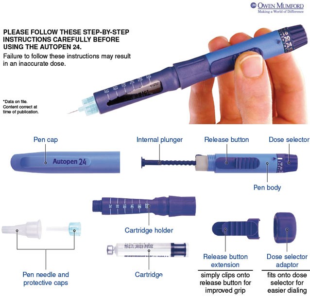胰岛素药液被储存在笔芯中,笔芯被放入笔芯架中,与笔身连接,而笔身是一个可调节剂量及进行注射的仪器,专门设计的一次性针头更细、更短,因此注射时引起的疼痛感非常轻微。患者在使用时只需把剂量按钮调节到所需要的剂量单位,然后把针头扎入皮下组织,一按剂量按钮到底,即可完成注射。