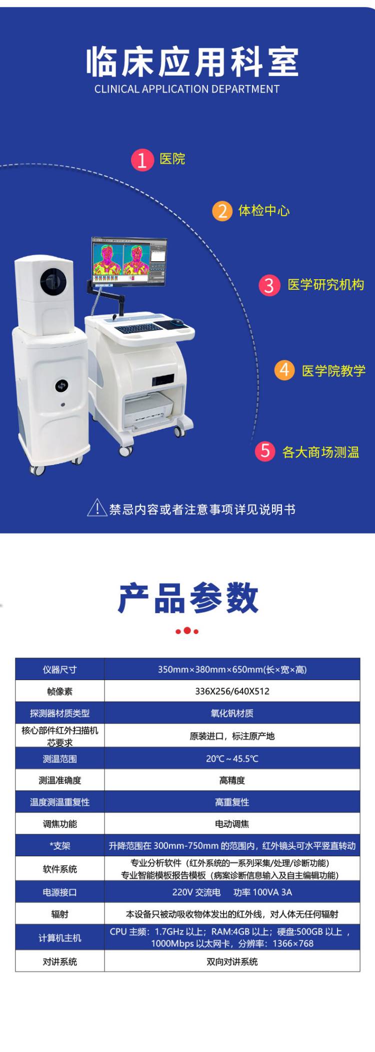 ①早期探查:热图检查无创 、安全 、客观 ,直观 ,计算机存档 、自动对比分析, 适于普查 、 ,能及时发现异常和异常苗头 ,以利患者去作进一步深查和及早治疗, 使许多疾病消灭于早期阶段 。