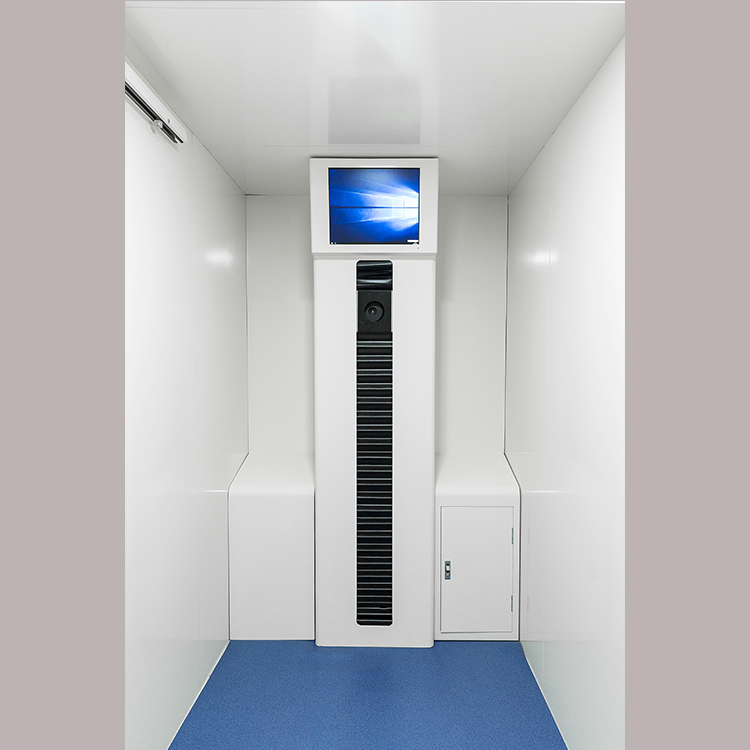智能医用红外热断层成像系统由红外摄像头、控制系统(包括触摸屏、舱内显示器、继电器控制模组、控制板、路由器)、舱体(由底板、侧板、顶板、舱门、舱门电动模组、灯)组成。用于测量人体表面温度的分布并提供红外热像图。