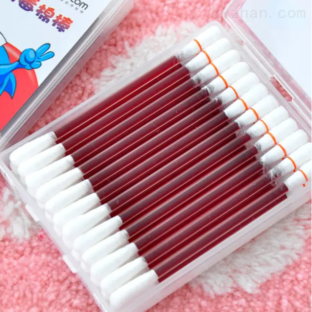 是由含碘伏棉球和塑料棒组成的,含碘伏棉球则由医用脱脂棉制成的棉球浸润聚维酮碘溶液而成。利用了大气压和重力,使用时将棉签彩环端折断,即可由大气压和重力将碘伏压入另一端,然后就能使