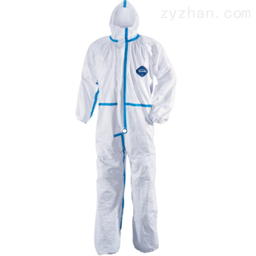 医用一次性防护服采用复合无纺布材料制成,由帽子、上衣和裤子连体组成。