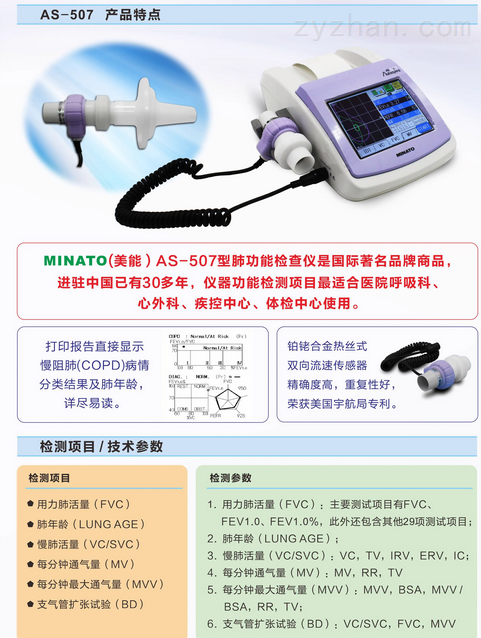 日本美能AS-507 肺功能检查仪(便携式) 产品特点: