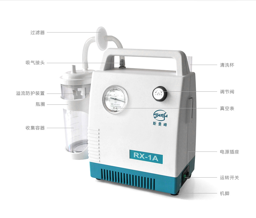 RX-1A型小儿吸痰器供医疗机构医务人员用于吸出小儿患者上呼吸道中的分泌物。