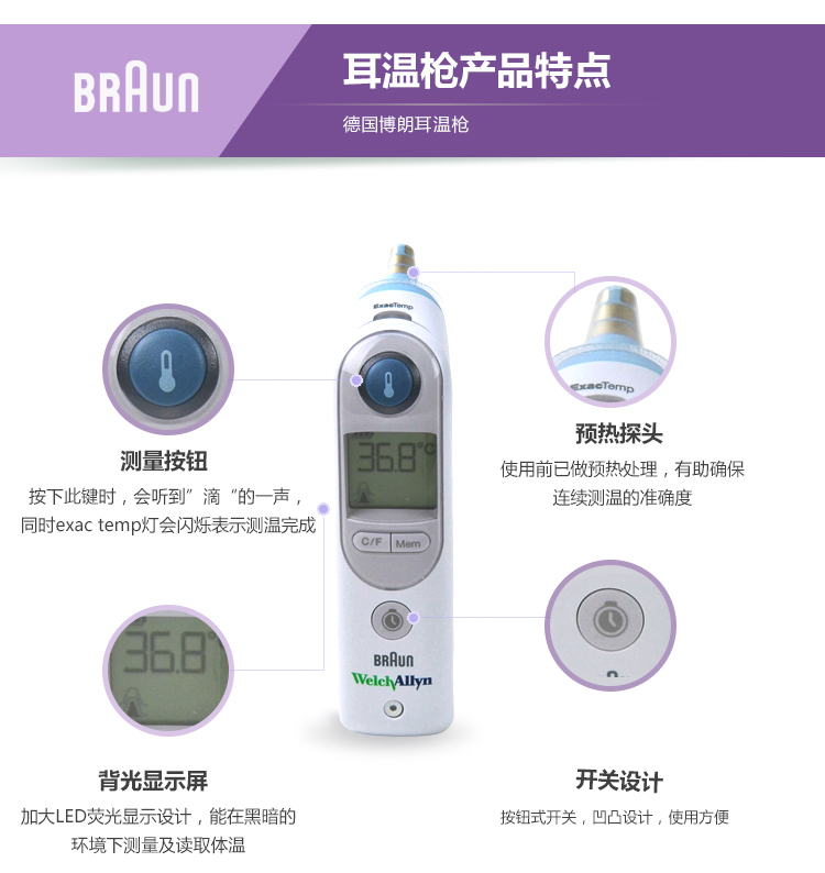 德国博朗Pro6000耳温计耳温枪电子体温计