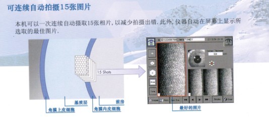 4.快速及自动地分析角膜的内皮细胞 不必借助外部电脑,本机依靠预置的软件即可自动分析角膜内皮细胞。