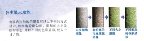 5.具有多项显示方式 提供4种内皮图像采集模式:(1)内皮细胞图像(2)有轮廓的内皮细胞图像(3)不同大小细胞图像(4)不同形态的图像。