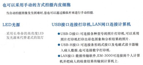 (1)UBM-D接口:直接连接照片打印机,打印出彩色图像和分析结果的照片。