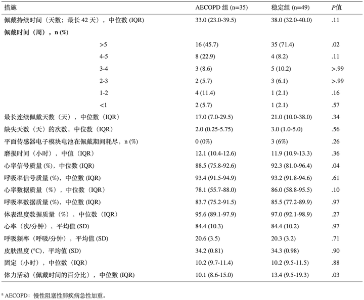 ·AECOPDa和稳定组的可行性和生命体征测量