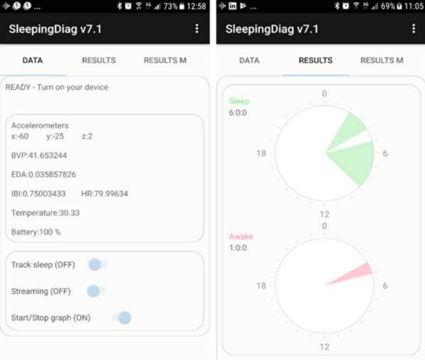 *移动应用程式特点:移动应用程序直接通信并从EmpaticaE4设备收集数据,并通过直观的用户界面向用户提供有关其睡眠模式规律性的实时信息,并从手环E4中嵌入各种传感器收集实时数据,这些数据随后被发送到存储数据库,以便进行机器学习处理服务器端。