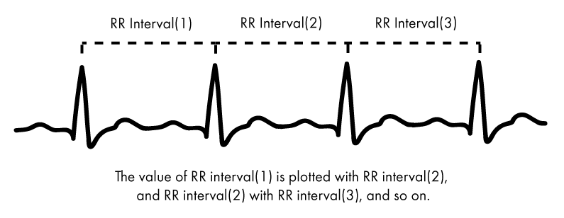 HRV 较常见的可视化方法之一是称为庞加莱图的图形。该图表以杰出的法国数学家命名,绘制了 RR 间隔(每次心跳之间的距离),RR 间隔就在前面。这将在下面进一步解释。