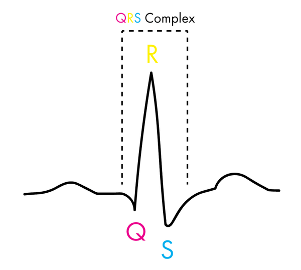 这被称为 QRS 复合波,每个字母对应心脏活动的不同部分。需要注意的重要一点是,复合体的“R”是从中获取分析值的区域。当我们有几个心跳相邻时,那么每个“R”之间的距离(以毫秒为单位)被定义为“RR间隔”(或者有时是“NN间隔”以强调心跳是正常的)。