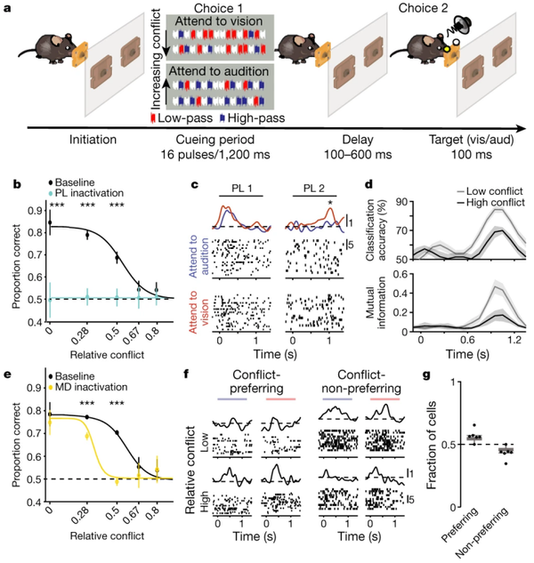 Mukherjee 博士在丘脑中确定了两组表型不同的中背神经回路。一组在前额叶皮层释放兴奋性神经递质,而另一组释放抑制性神经递质。在不确定的时刻,这些神经回路一起放大或抑制前额叶皮层的活动。
