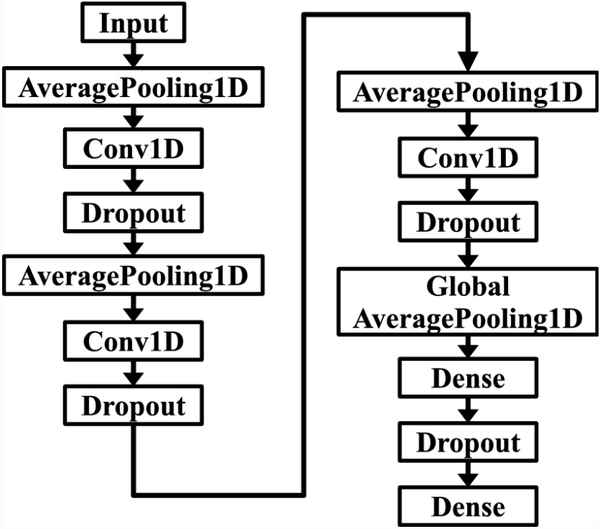 使用 Coleeg 软件进行评估过程;选择CNN1D模型构建CNN1D_MFBF模型。描述 CNN1D 模型的框图如图 2所示。