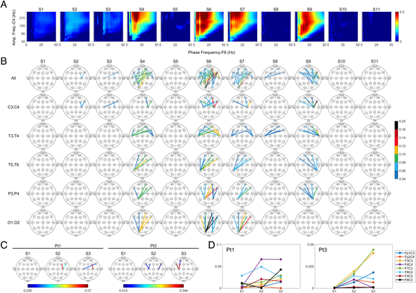 数据记录的原始采样频率为 512 Hz。通过减去每个通道在每个时间点的平均电位,重新参考使用 Fpz 参考记录的来自国际 10/20 系统的 19 个 EEG 通道。陷波滤波器用于去除 EEG 信号中的 60 Hz 伪影及其超谐波。6 个频段被定义为 delta(0 到 4 Hz)、theta(4 到 8 Hz)、alpha(8 到 13 Hz)、beta(13 到 25 Hz)、gamma1(25 到 55 Hz)和 gamma2( 80 至 150 赫兹)。