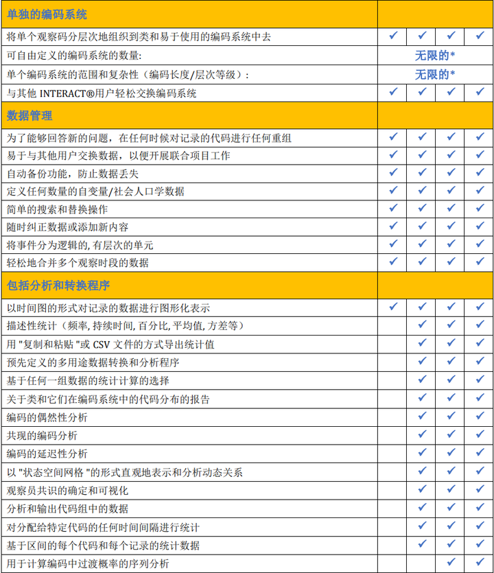 | 分析功能 | 基础统计分析、可视化时间轴、基于Cohen's Kappa的信度计算、序列分析等 |