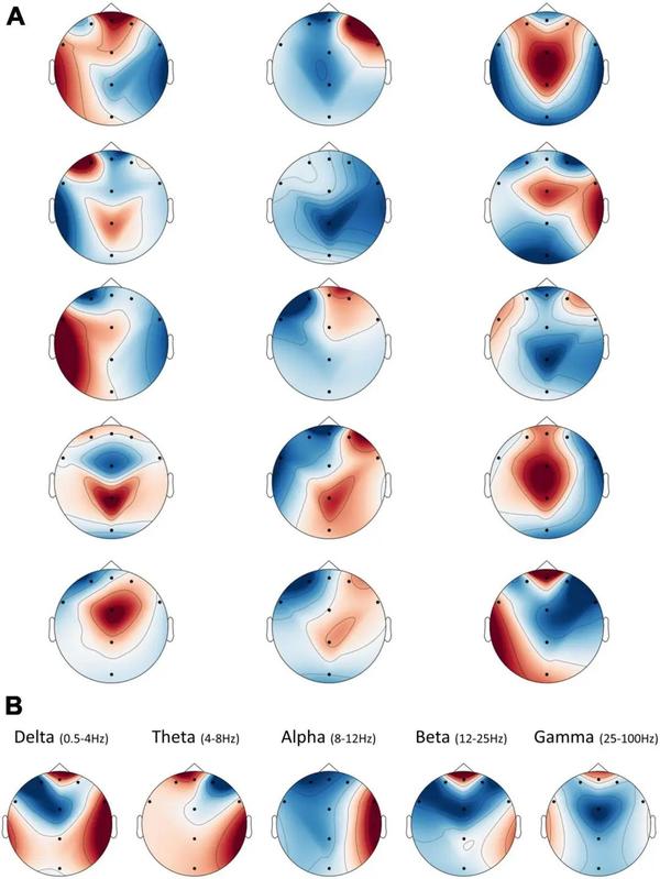 为了避免脑电图研究中经常需要的复杂的手动特征提取,研究将完整的脑电图数据输入到 DLN 中,几乎没有任何预处理、伪影剔除或过滤,并设计其层以通过训练“自动”执行所有特征提取。这些层本质上取代了(实验认为是任意的)选择“经典”频率带通滤波器(alpha、beta、gamma、delta 和 theta)的标准做法。并且,某些层充当空间滤波器,用于识别电极上的最佳权重,而其他层则识别时域中的重要组成部分(Bi-LSTM 和注意力),而不是任意定义分析的时间窗口。