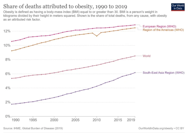 2020年全球肥胖/超重(BMI≥25)的人数为26亿人,预计到2035年,肥胖/超重患病率从2020年的38%增加到51%,全球超过40亿人属于肥胖/超重。