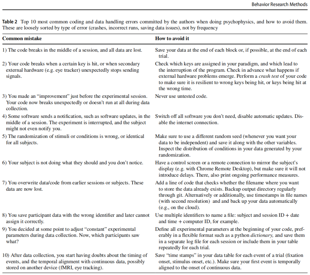 **,还有许多其他“大脑和周边传感器”可以提供丰富的测量结果来补充行为输出(例如心率、皮肤电导率)。但如果实验需要精确控制不同听觉和视觉事件的时间,考虑使用带有外部设备的验证措施(工具包,例如Black Box Toolkit)。