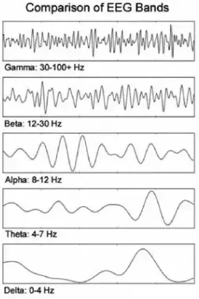 脑电信号可以看成就是由不同的正弦信号混壘而成的混合信号,通过傅里叶变换,就能够将这个混合信号重新分解成具有不同频率的正弦波,从而获得频域上的信息。
