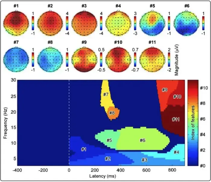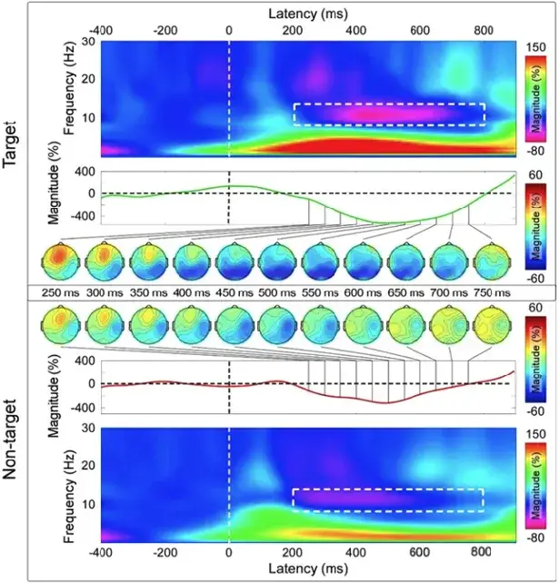 时域分析关注的是EEG波幅随时间进程的变化情况,事件相关电位(ERP)分析就是*常用的时域分析方法,能够快速得到由某个事件(刺激)所引起的波幅值的变化,如常见的事件相关电位成分P300,MMN、N400等。