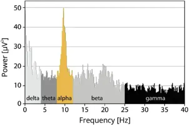 因此,频域分析实现的是EEG信号从时域到频域的转换,频域分析的结果为各个频率上的能量值分布,也就是我们常说的power值,可以简单理解为振幅的平方,单位为uV2。