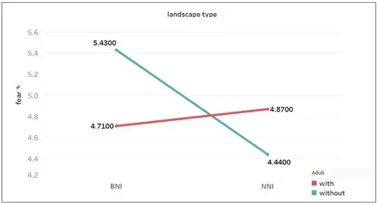 总体而言,研究发现,在自然景观中,感知到的恐惧感通常低于人工景观,但成人的存在会影响感知到的恐惧感。