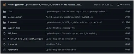 NeuroDOT_Beta是一个可扩展的**Matlab 工具箱,与Matlab2015版兼容,包含 4 个文件夹:Data、Documentation、Functions和 Support_Files。