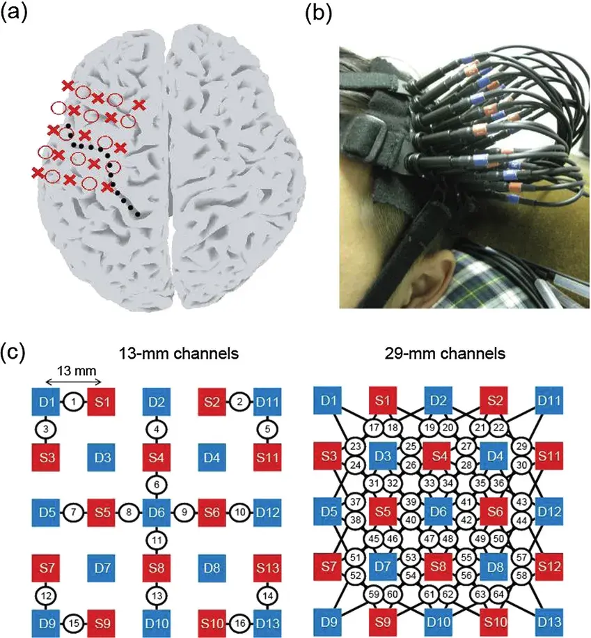 高密度fNIRS采用高密度的光源和探测器排列,覆盖更大面积的头皮区域,提供高空间分辨率的脑功能图像。