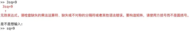 注意,如果使用无效的变量名,MATLAB将显示错误信息和建议的更正。可以使用该修改,修改,或按Esc删除建议。