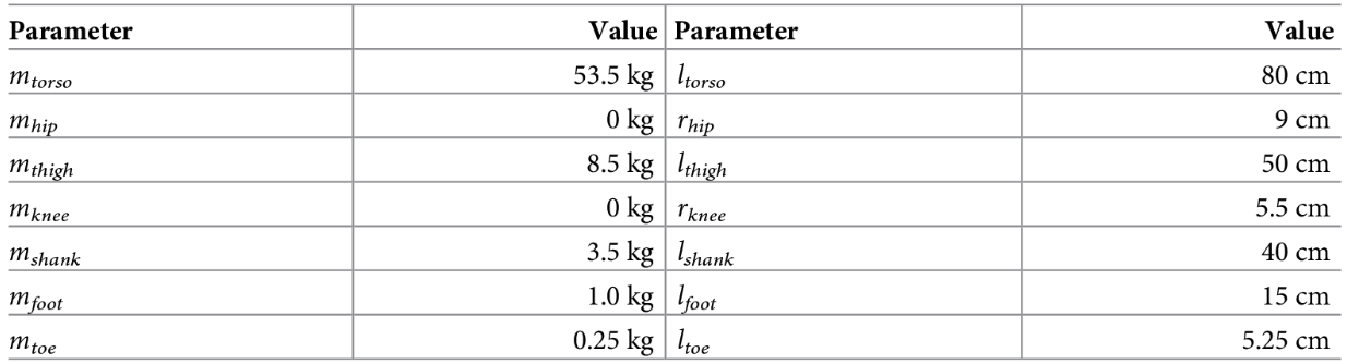 该控制器基于 Geyer 模型,并结合了额外的控制律来调整目标髋关节角度并固定为脚跟着地做好准备的髋关节和膝关节。控制系统包括三个主要功能:力反馈、长度反馈和肌肉驱动的比例微分 (PD) 控制。1)力反馈:力反馈定律返回刺激信号,