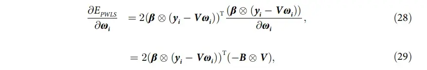 因此,PWLS 的目标是求解关于ωi 的方程 (31)。结合方程 ( 29 ) 和 ( 31 ) 可得