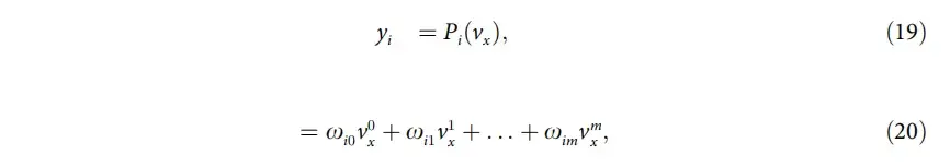 通过m次多项式函数 Pi ( vx )(图4)对输入速度 vx 进行调制,如下所示: