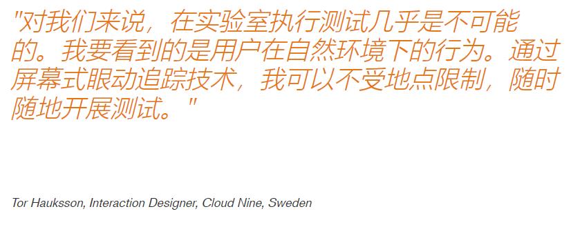 被试者可坐在距屏幕合适的距离进行数据采集,并可以自由移动头部,眼动仪很难被他们所察觉。这些特征创建了一种无干扰的测试环境,有利于采集人们的自然行为。