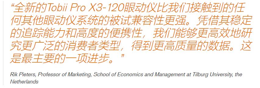 该产品灵活性高,可应用于人类行为研究中。眼动仪采用了超薄、超轻的便携式设计,可方便地应用到各类研究场合。Tobii Pro X3-120眼动仪拥有比以往更强大的兼容性,可适应更多的被试人群,而它严谨的外观设计极大程度上确保了无干扰的数据采集。