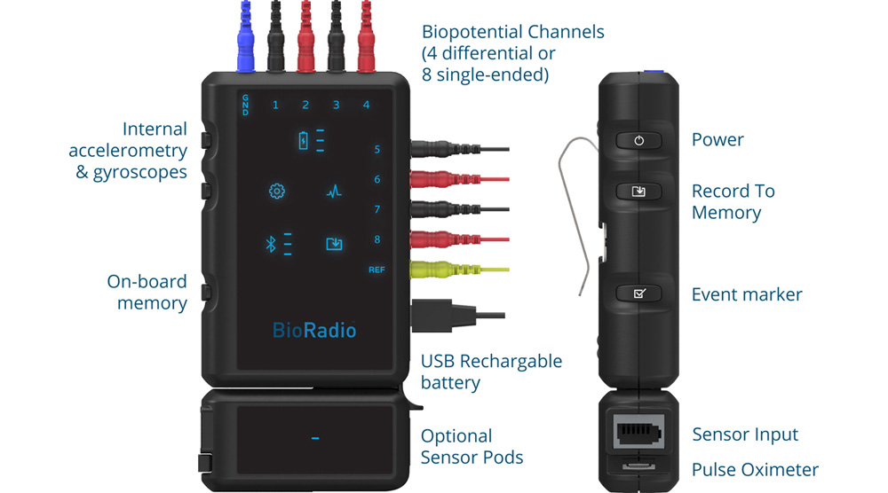 Bio-Radio生理监测仪拥有多个可编程通道,全面检测生理数据,并采用无线蓝牙方式传输。Bio-Radio佩戴方便,安装快速,使用便捷,数据格式灵活,可以与多种软件和分析工具兼容。 Bio-Radio生理监测仪的传感器包括ECG、EEG、EMG、GSR、脉搏、血氧浓度、温度、呼吸、肺活量等,可以达14通道。 针对教学用途,Bio-Radio作为Lab Course生理教学系统的一部分,为学生提供生理数据获取、数据分析、信号处理、生物工程和临床应用。