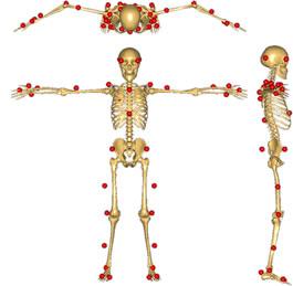AnyBody Modeling System,作为规定人体动作方法之一使用运动捕捉系统。作为信标器组套的例子,右图为Vicon Plug–in-Gait的标识物组套。