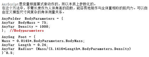 AnyScript是AnyBody面向对象的建模语言,和Java、C++相似,接近JavaScript语言。上述范围内的脚本,是以AnyScript记述简单的筋组合模型程序的一部分。