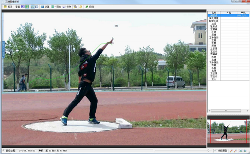 视讯图像解析系统包括五个部分: 图像剪辑可以对拍摄视频进行裁剪; 图像合成可以实现三维拍摄的同步合成; 图像解析可以识别出目标点的空间 位置; 坐标转换可以获得目标点在空间的绝对位置; 快速反馈可以对训练和 比赛进行实时监控,快速给出数据指标。