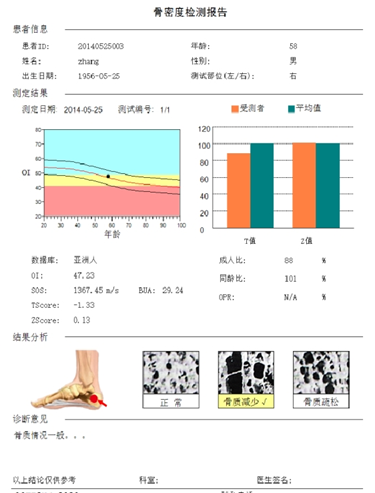 1、超声波参数:BUA(宽带超声衰减) SOS(超声声速)OI(骨质疏松指数)