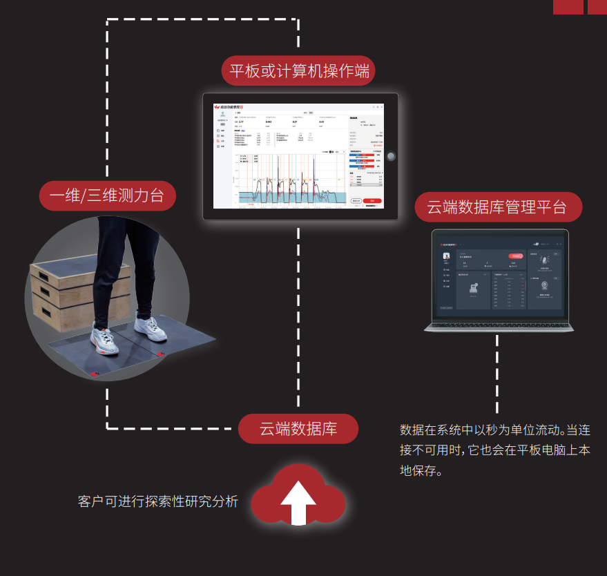 一键生成报告:预设20+标准化测试模块(如下蹲跳、跳深),自动计算动态力量指数、离心利用率等科研指标。