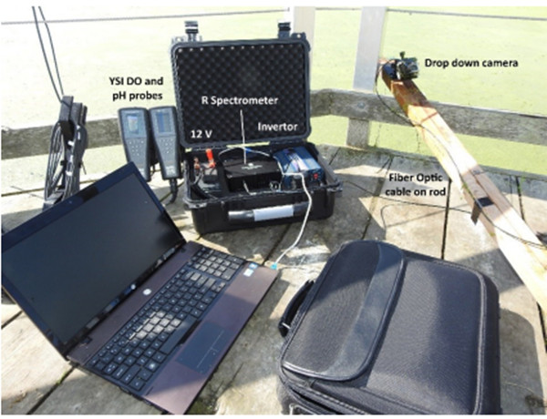图 1. 用于水生光穿透研究的 R 型光谱仪的现场配置。